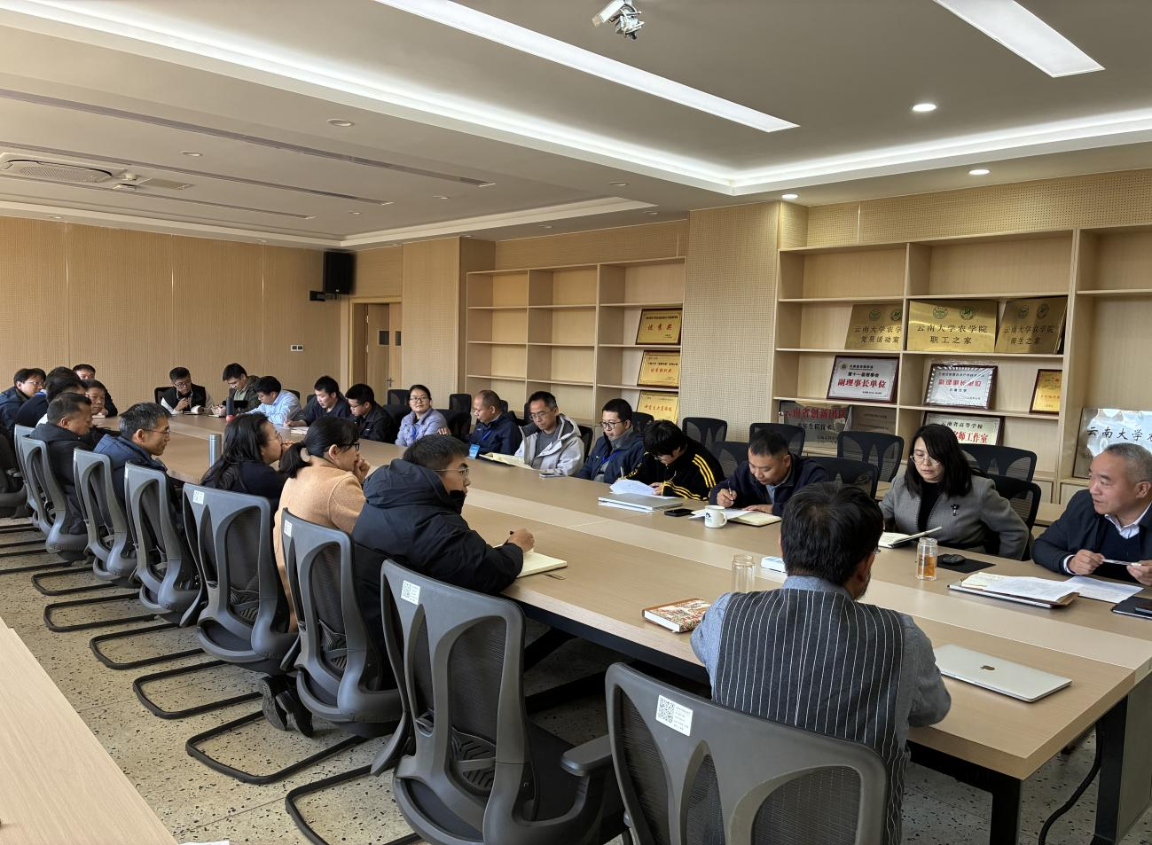 会上,院长胡凤益首先介绍了学院人才队伍的整体状况与核心优势,围绕学科方向凝练、科研创新体系构建、重大成果培育转化、高水平师资队伍建设、社会服务效能提升和国际合作拓展等工作领域,阐述了学院在“十五五”期间的发展构想、主要目标任务与实施路径,为会议讨论明确了方向。